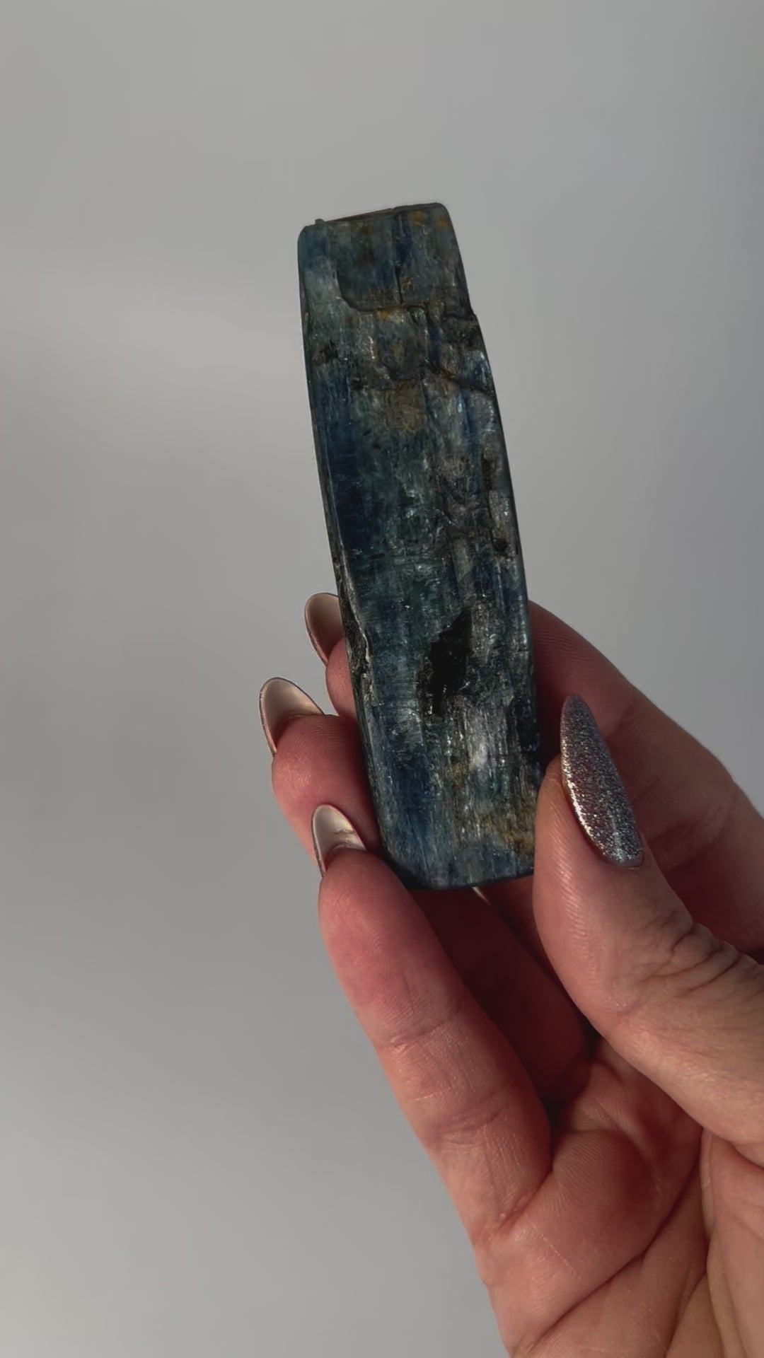 Blue Kyanite balances and aligns the body’s energy centres automatically. It opens the throat chakra opening communication and self expression. It encourages intuition, meditative abilities and helps in expressing ones truth. Blue Kyanite is a perfect stone for energy healers because it doesn't need cleansing.